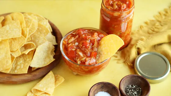 This salsa is delicious, served with cream cheese and scoops chips. Make 12-13 Mason Jars.